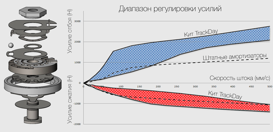 - клапаны имеют особую форму и изготовлены из материала, который постоянно поддерживанием демпфирование и снижает износ всей подвески.